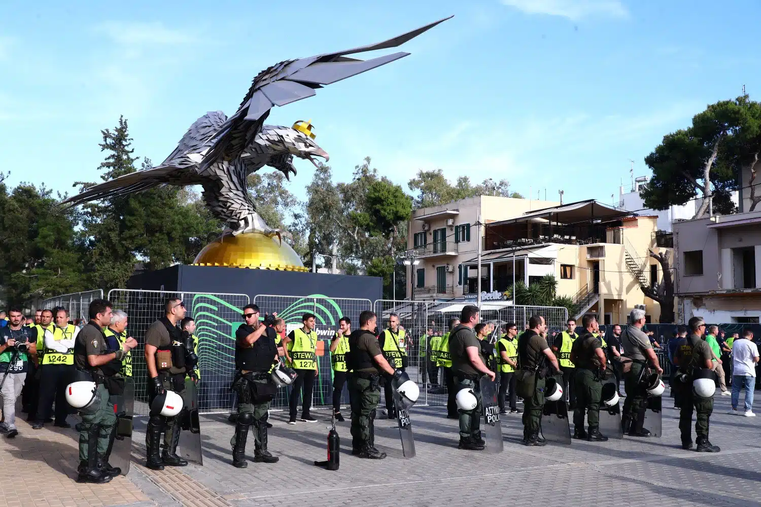 Ήδη από το βράδυ της Κυριακής οι αστυνομικές δυνάμεις προχώρησαν στη σφράγιση του γηπέδου και την έρευνα όλων των χώρων του, από ειδικά εκπαιδευμένους σκύλους. Παράλληλα, έχει δημιουργηθεί περίμετρος ασφαλείας στον εξωτερικό του χώρο, από τον οποίο περνούν μόνο όσοι φέρουν ειδική διαπίστευση και κατόπιν αυστηρού ελέγχου.