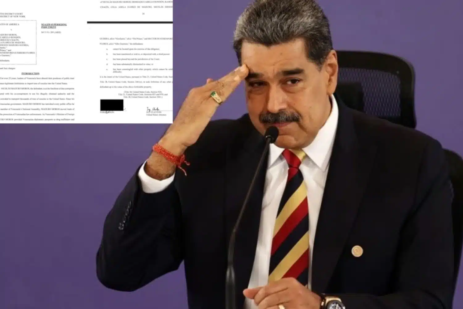 Στο κατηγορητήριο των αμερικανικών Αρχών υποστηρίζεται ότι ο εκλεγμένος πρόεδρος συμμετείχε, από το 1999 έως το 2020, σε «ναρκοτρομοκρατική συνωμοσία» μεταξύ του Cartel de los Soles και των FARC, με στόχο τη μαζική διακίνηση κοκαΐνης προς τις ΗΠΑ.