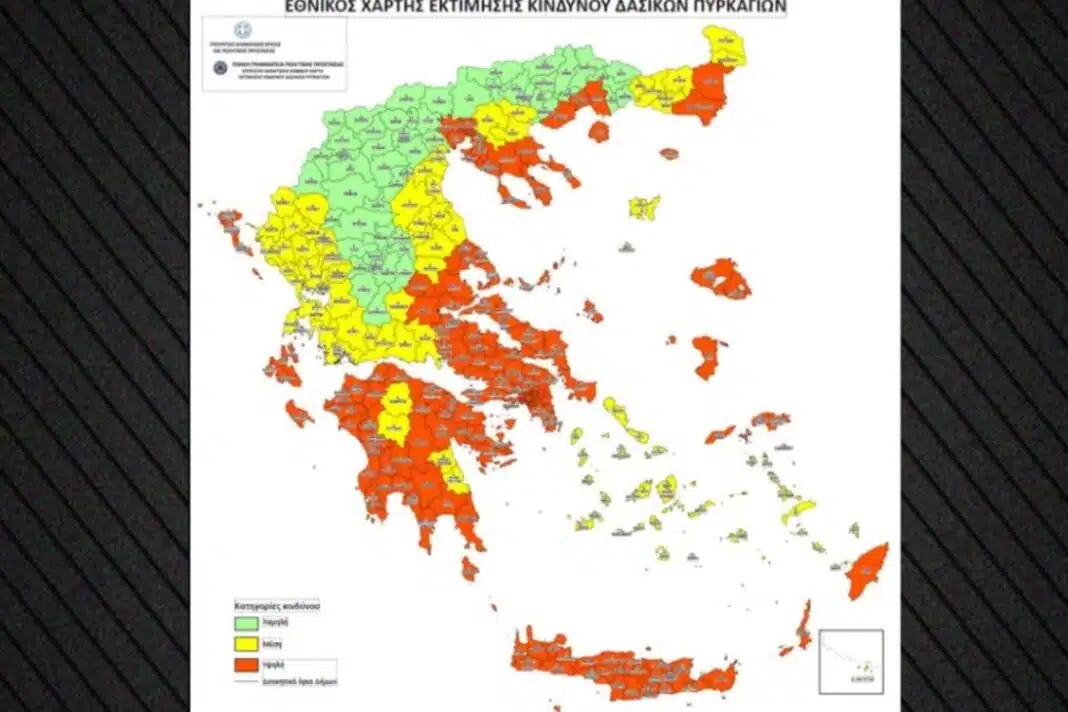 Ο πρώτος Εθνικός Χάρτης Εκτίμησης Κινδύνου Δασικών Πυρκαγιών μετά από 45 χρόνια τίθεται σε εφαρμογή, εισάγοντας νέο τρόπο αξιολόγησης του κινδύνου και νέο μοντέλο πρόληψης, με κατάταξη των δήμων σε τρεις κατηγορίες επικινδυνότητας και αξιοποίηση πρόσφατων επιστημονικών δεδομένων.