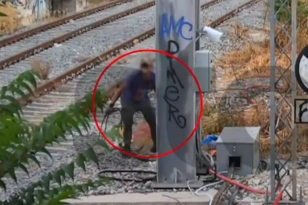 Σύμφωνα με βίντεο που προβλήθηκε από τον τηλεοπτικό σταθμό STAR, ο δράστης προσπαθούσε για μισή ώρα να αποσπάσει εξαρτήματα της υποδομής του ΟΣΕ, με σκοπό να κλέψει τον χαλκό.