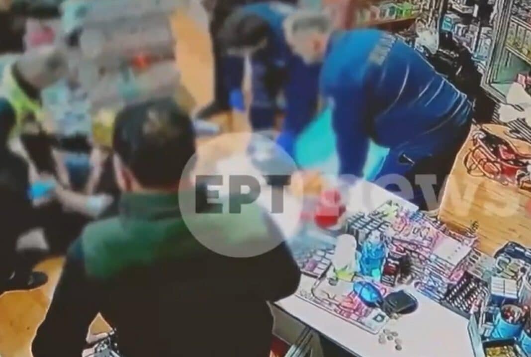 Μια ηλικιωμένη, η οποία είναι πελάτισσα του καταστήματος, προσπαθεί να καθαρίσει κάπως τα αίματα από το σώμα του, ενώ λίγη ώρα αργότερα φαίνονται οι αστυνομικοί της ομάδας ΔΙΑΣ, οι οποίοι κλήθηκαν για το περιστατικό, να μπαίνουν στο κατάστημα και να του δίνουν τις πρώτες βοήθειες.