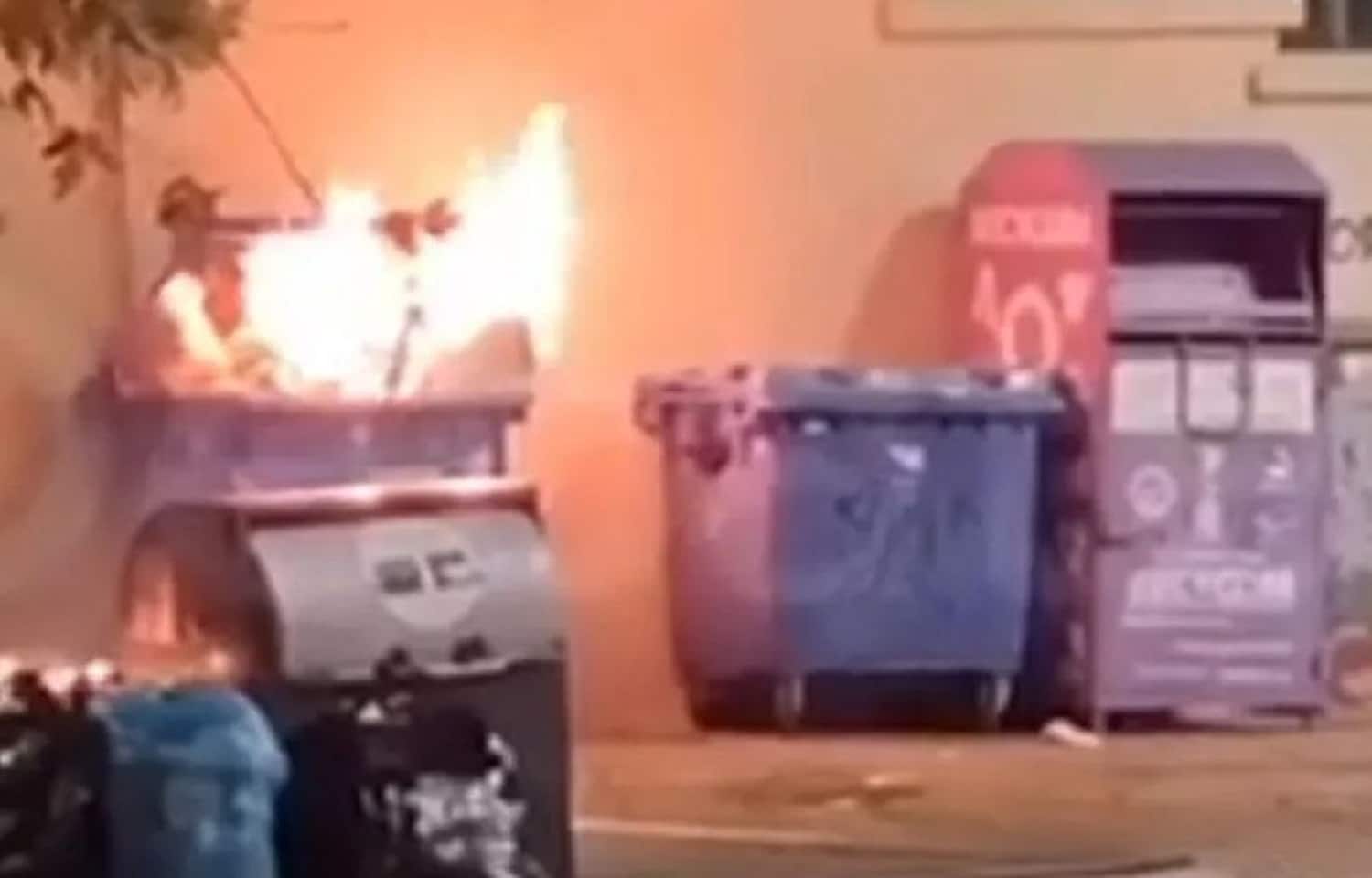 Όπως φαίνεται και στο βίντεο παρακάτω έχει τυλιχθεί στις φλόγες ένας κάδος, καθώς και δύο σακούλες σκουπιδιών που βρίσκονται μπροστά από αυτόν.