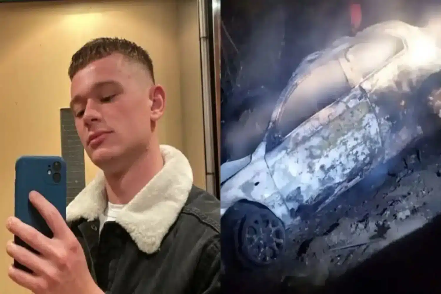 Στη συνέχεια, το αυτοκίνητο που οδηγούσε ο 22χρονος προσέκρουσε σε μεταλλικές μπάρες και ανατράπηκε, με αποτέλεσμα να εκδηλωθεί πυρκαγιά και να εγκλωβιστεί οδηγός.