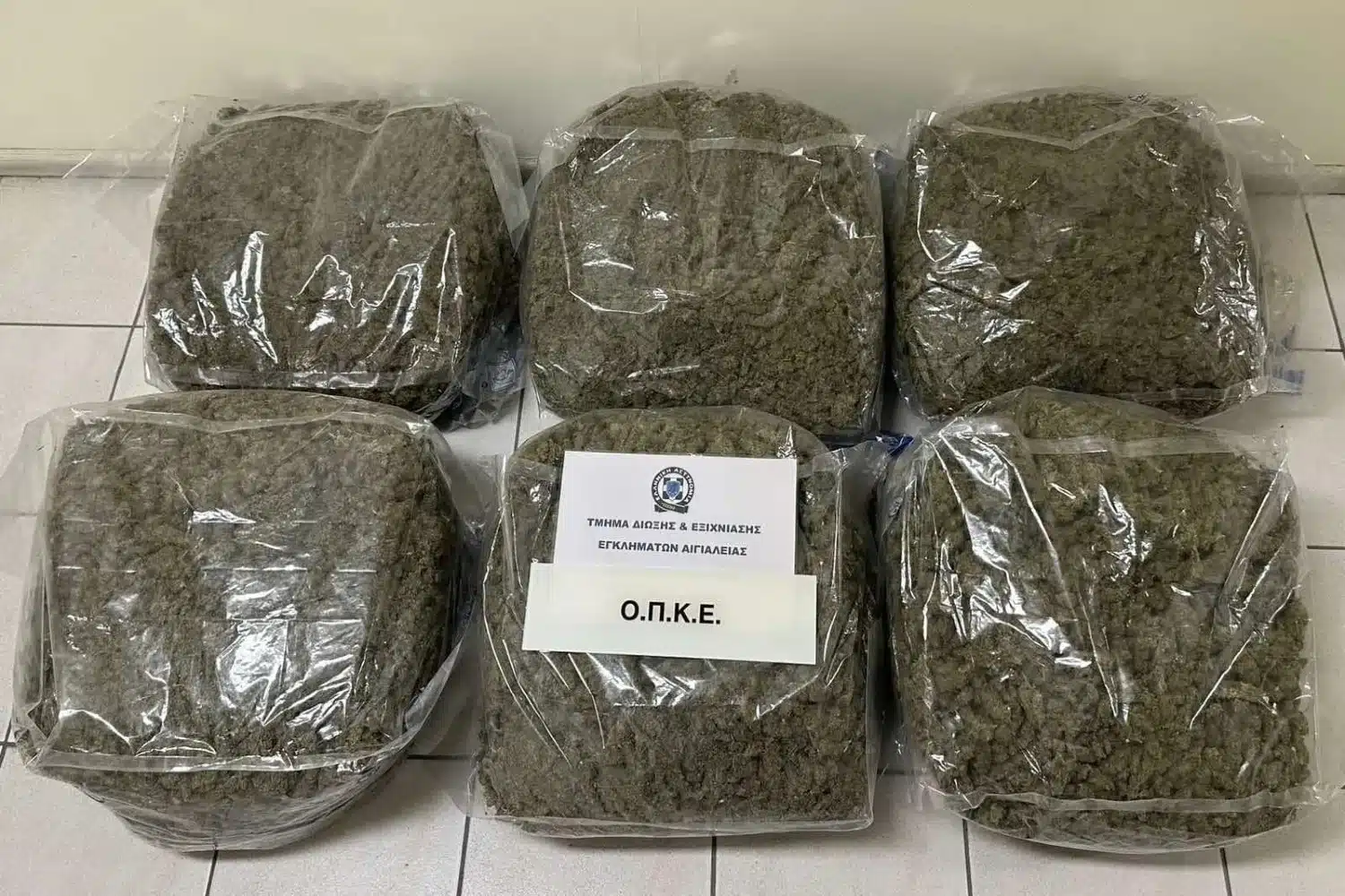 • 32 κιλά και 284 γραμμάρια κάνναβης, διαμοιρασμένα σε έξι συσκευασίες