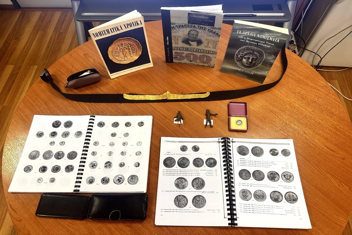 Ειδικότερα, είχαν προγραμματίσει την πώληση αρχαίου νομίσματος, δύο χάλκινων αρχαίων αγαλματιδίων και χρυσού αρχαίου διαδήματος.