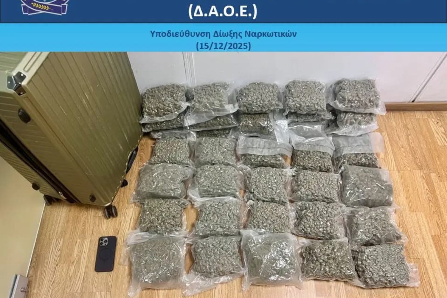 Από την Υποδιεύθυνση Δίωξης Ναρκωτικών της Διεύθυνσης Αντιμετώπισης Οργανωμένου Εγκλήματος συνελήφθη απογευματινές ώρες χθες, Κυριακή 14 Δεκεμβρίου 2025, στον Διεθνή Αερολιμένα Αθηνών «Ελ. Βενιζέλος», 21χρονος αλλοδαπός – μέλος διεθνικής εγκληματικής ομάδας, που δραστηριοποιούνταν στην εισαγωγή κάνναβης στην ελληνική επικράτεια, μέσω της αεροπορικής οδού.