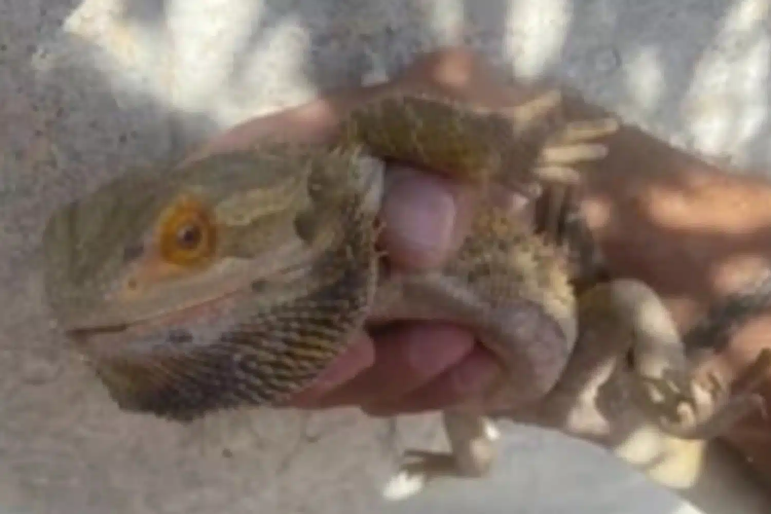 Ο «γενειοφόρος δράκος», όπως είναι το όνομα του ερπετού, φαίνεται πως το… έσκασε από το σπίτι του και βρέθηκε στην αυλή της πολυκατοικίας, τρομάζοντας τους κατοίκους οι οποίοι ήρθαν αντιμέτωποι πρώτη φορά με το συγκεκριμένο είδος ζώου.