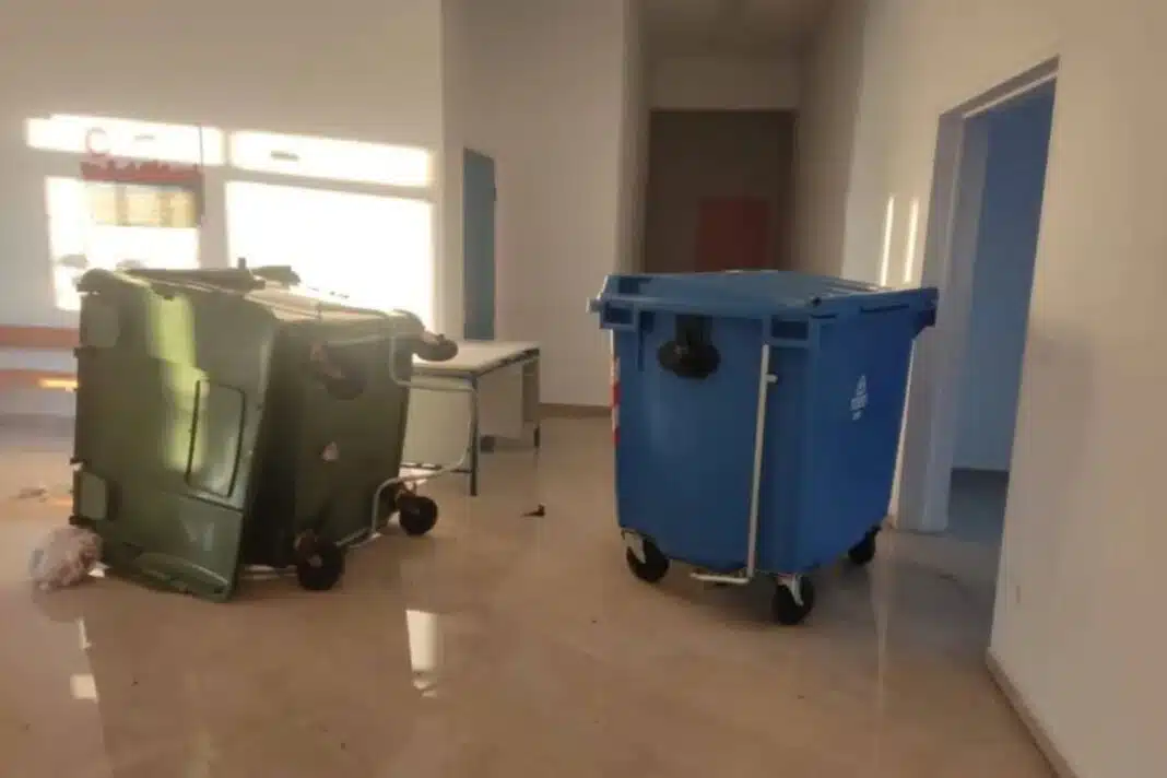 Άγνωστοι δράστες προκάλεσαν εκτεταμένες φθορές στο κτίριο, πλημμυρίζοντας με νερά όλες τις αίθουσες του ισογείου και τα υπόγεια, αφού για πολλές ώρες είχαν ανοίξει το νερό και είχαν ρίξει το λάστιχο μέσα στο κτίριο αφού έσπασαν το τζάμι.
