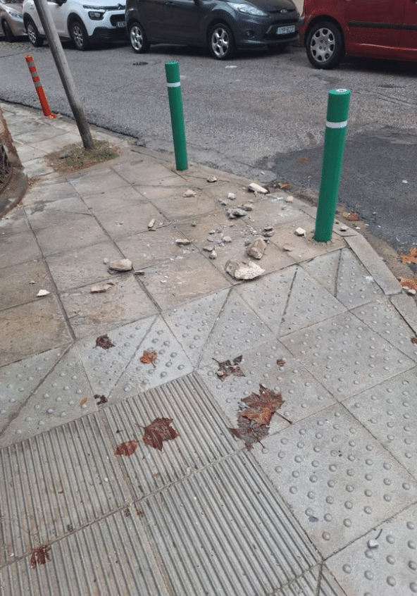 Ένας κάτοικος του Περιστερίου στάθηκε ιδιαίτερα τυχερός το μεσημέρι της Τρίτης (21/10), καθώς πέρασε από σημείο όπου λίγο νωρίτερα είχαν αποκολληθεί και πέσει σοβάδες από κτίριο.
