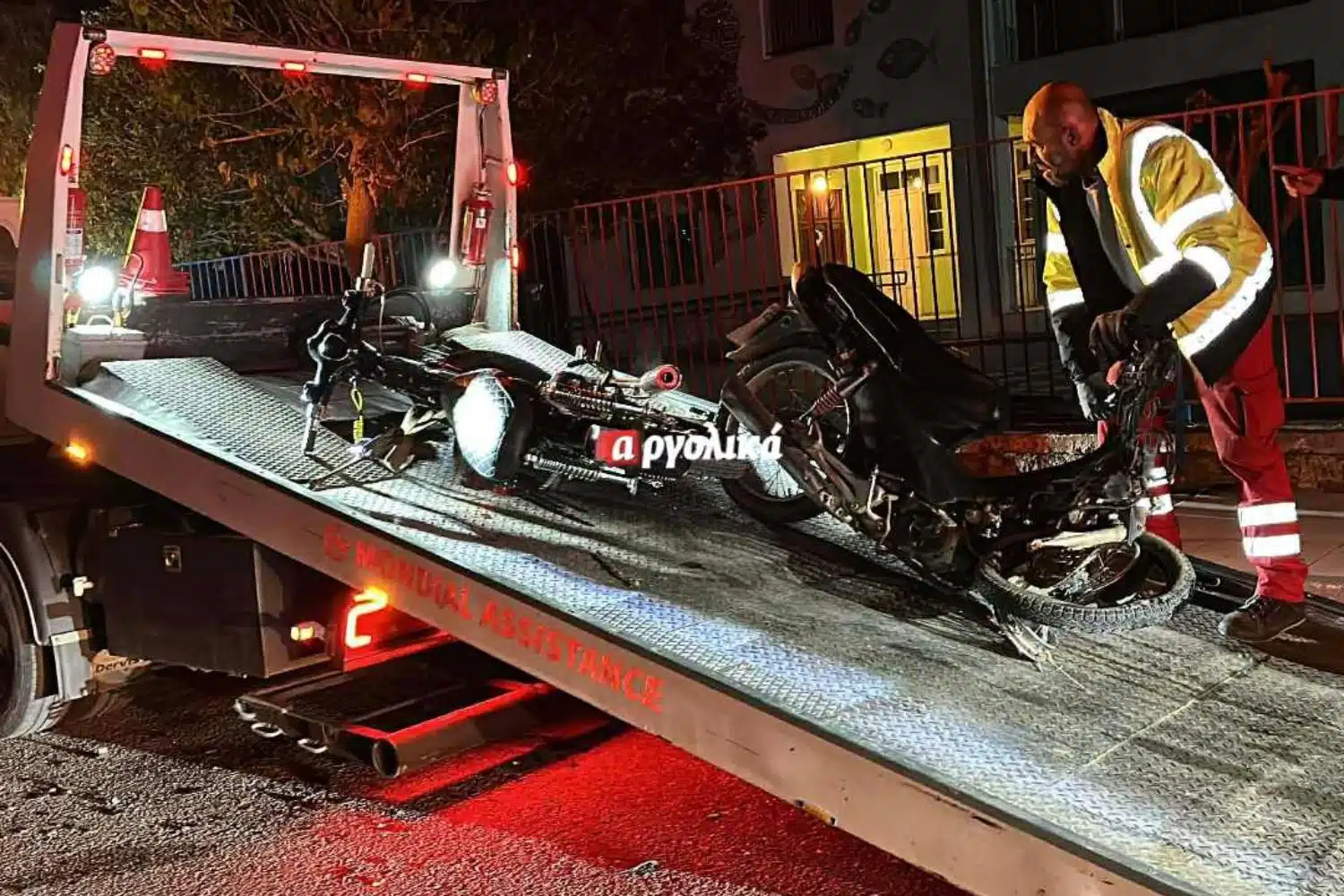 Ακόμα μια τραγωδία στην άσφαλτο εκτυλίχθηκε στην Αργολίδα, όταν δύο μηχανές συγκρούστηκαν μετωπικά με αποτέλεσμα από το τροχαίο να σκοτωθεί ένας 35χρονος και να τραυματιστεί ένας 16χρονος.