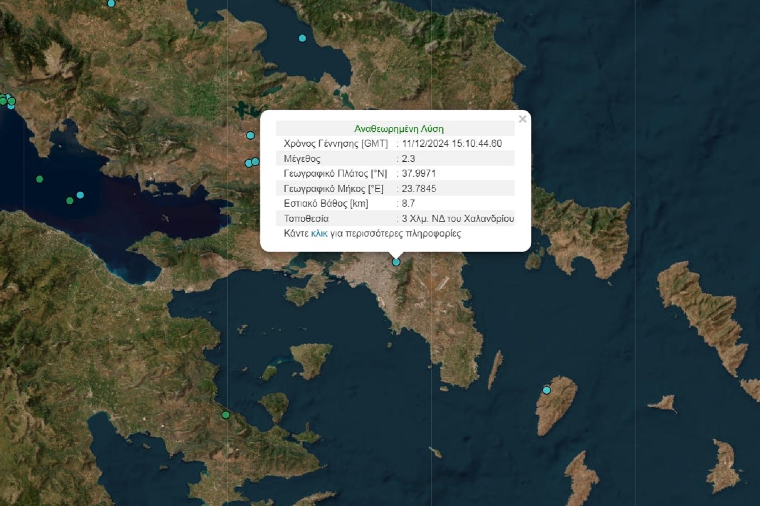 Σεισμός μεγέθους 2,3 βαθμών της κλίμακας Ρίχτερ έγινε αισθητός στις περιοχές της Αγίας Παρασκευής και του Χαλανδρίου, στην Αττική.