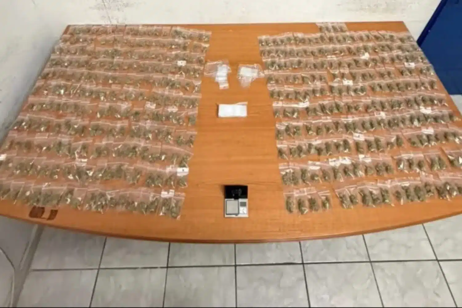 Στην συνέχεια σε έρευνα που έγινε στο σπίτι του 30χρονου, βρέθηκαν και κατασχέθηκαν 393 νάιλον συσκευασίες με 563 γραμμάρια κάνναβης, πλήθος υλικών επιμερισμού καθώς και ηλεκτρονική ζυγαριά ακριβείας.