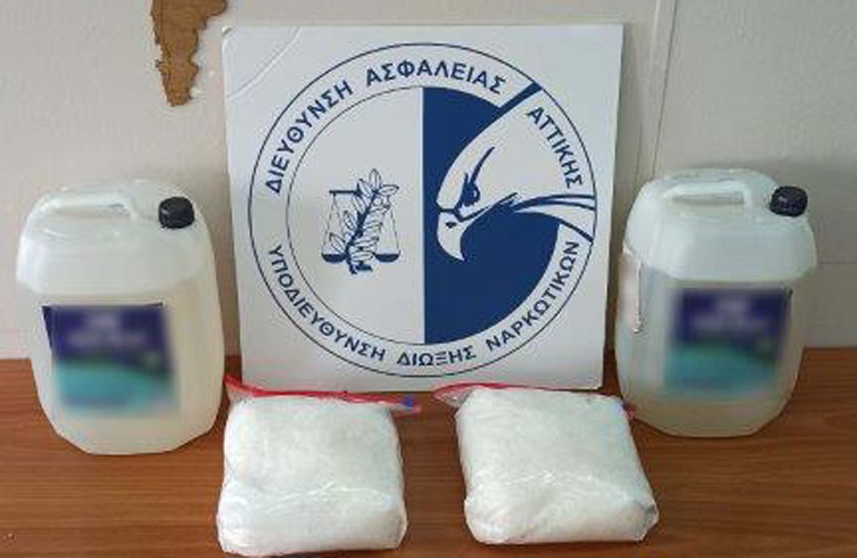 - δύο πλαστικά δοχεία που περιείχαν μεθαμφεταμίνη σε υγρή μορφή μικτού βάρους -19- κιλών και -830- γραμμ.