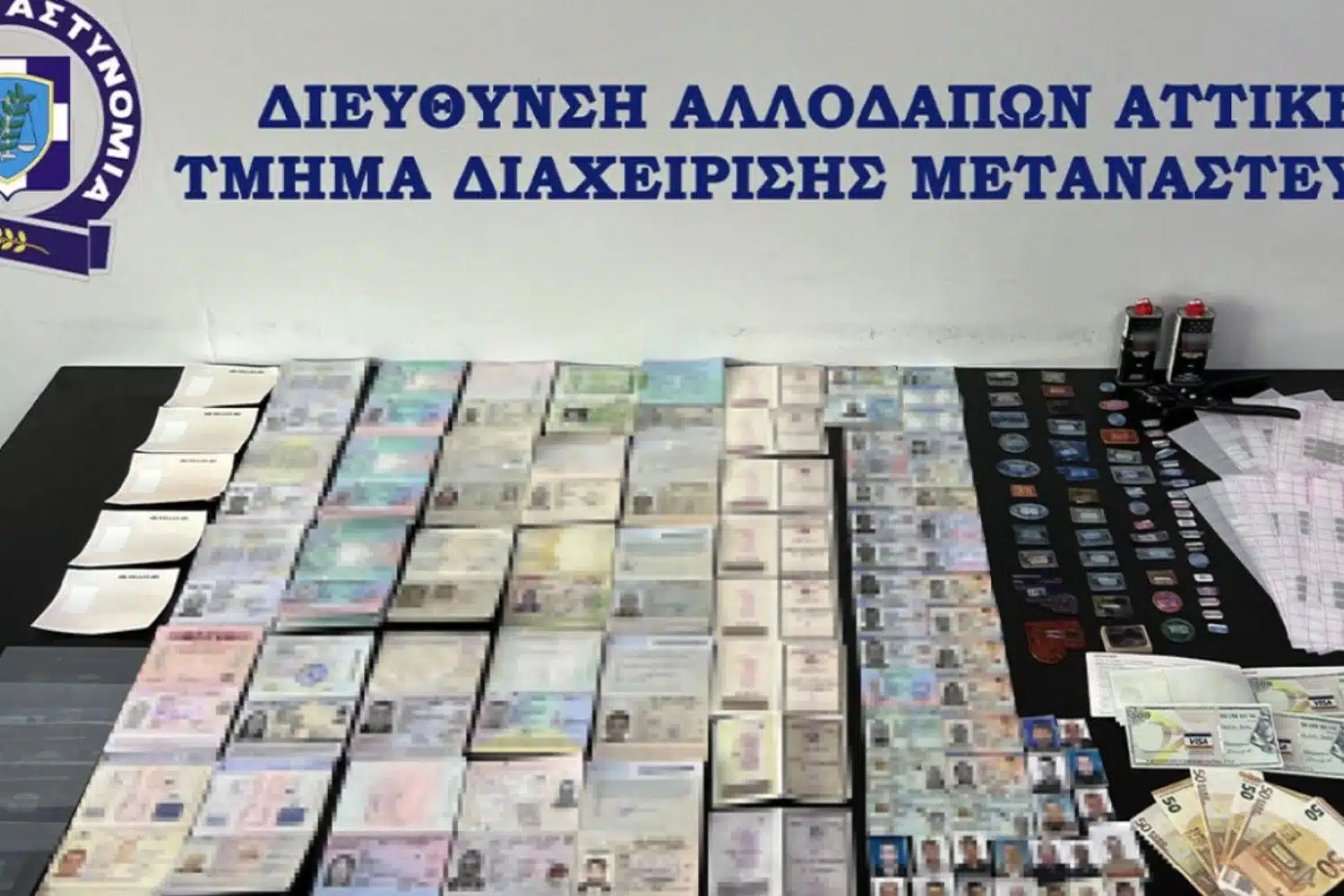 Εντοπίστηκε την Τρίτη (3/6) σε περιοχή της Αττικής, από αστυνομικούς του Τμήματος Διαχείρισης Μετανάστευσης της Διεύθυνσης Αλλοδαπών Αττικής, πλήρες εργαστήριο κατάρτισης πλαστών ταξιδιωτικών εγγράφων, με τα οποία πραγματοποιούνταν παράνομες προωθήσεις μεταναστών, κυρίως με την αεροπορική μέθοδο.