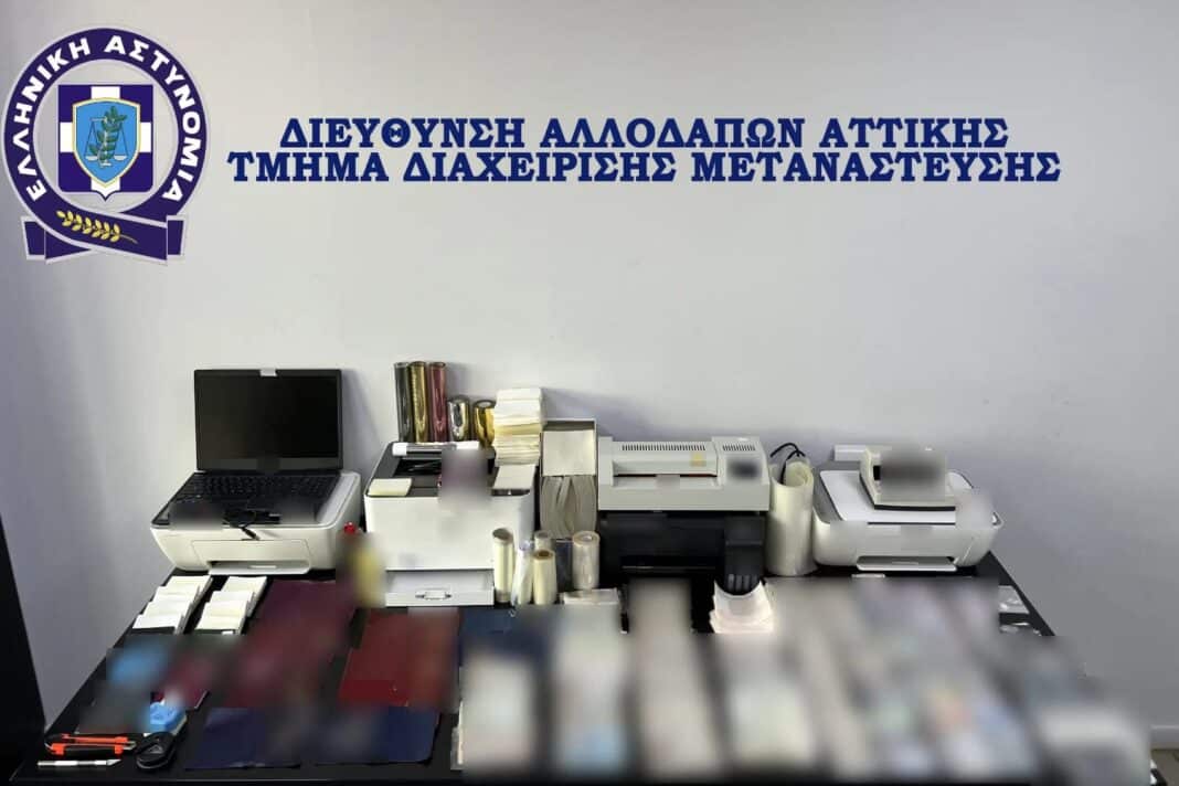 Από την Γενική Αστυνομική Διεύθυνση Αττικής εντοπίστηκε στο πλαίσιο συντονισμένης αστυνομικής επιχείρησης, χθες Τρίτη 27 Μαΐου 2025, σε περιοχή της Αττικής, πλήρες εργαστήριο κατάρτισης πλαστών ταξιδιωτικών εγγράφων, τα οποία προορίζονταν για τη παράνομη προώθηση μεταναστών, κυρίως με την αεροπορική μέθοδο.