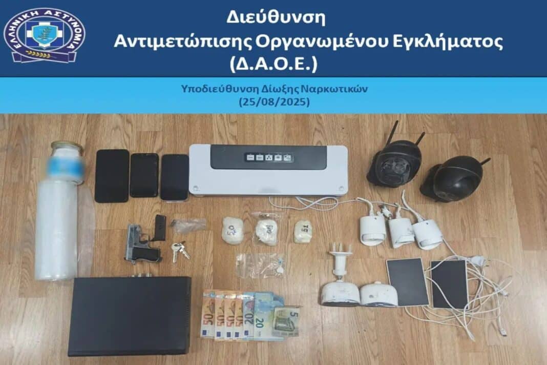 Από την Υποδιεύθυνση Δίωξης Ναρκωτικών της Διεύθυνσης Αντιμετώπισης Οργανωμένου Εγκλήματος συνελήφθησαν την 24 και 25 Αυγούστου 2025, σε περιοχές της Αττικής, δύο άτομα, που κατηγορούνται για –κατά περίπτωση– παραβάσεις της νομοθεσίας περί ναρκωτικών και όπλων.