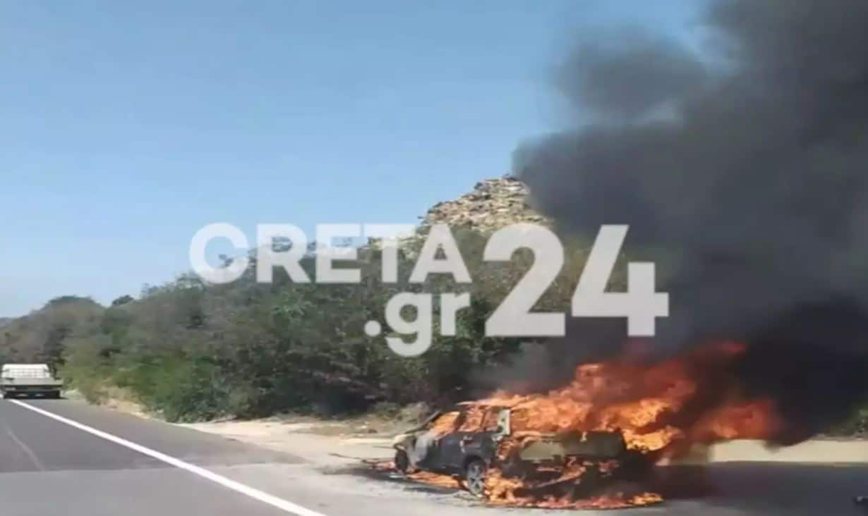 Μεγάλη φωτιά ξέσπασε νωρίτερα το μεσημέρι σε αυτοκίνητο στον δρόμο πριν το χωριό Σκεπαστή στο Ρέθυμνο.