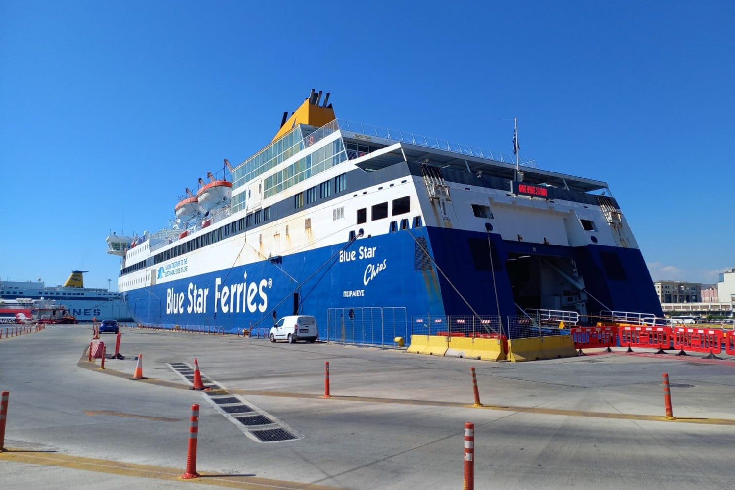Με την επιβίβασή του στο «Blue Star Chios» ακολούθησε την πλήρη διαδικασία ενημέρωσης και εξοικείωσης υπό την επίβλεψη ανώτερων αξιωματικών, συμπεριλαμβανομένης της εκπαίδευσης στη χρήση των υδατοστεγών πορτών.