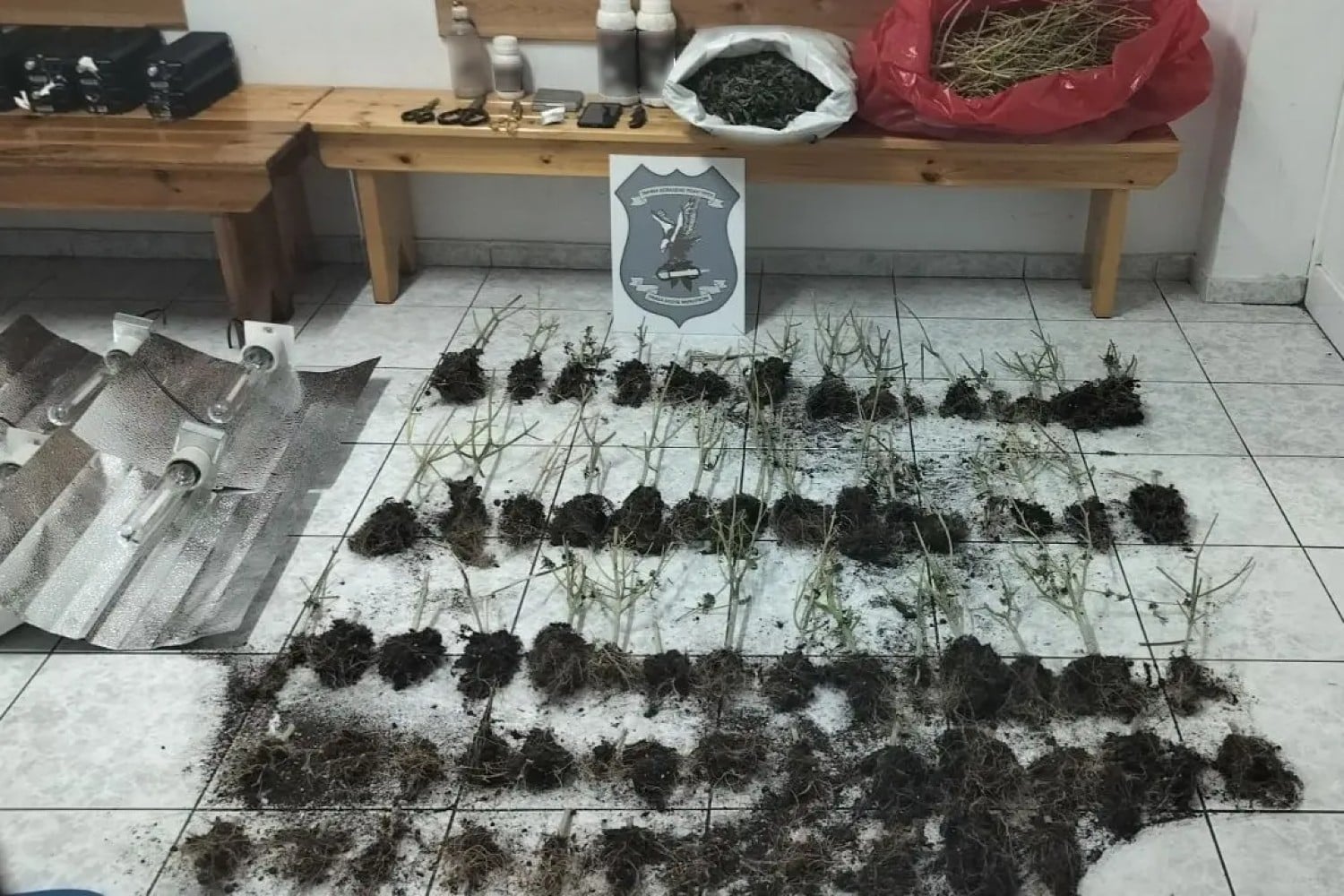 Επίσης, βρέθηκαν και κατασχέθηκαν 71 δενδρύλλια κάνναβης, ύψους έως 50 εκατοστών, τα οποία είχαν αποψιλωθεί, μια συσκευασία με φυτικά αποσπάσματα κάνναβης βάρους 1 κιλού και 556 γραμμαρίων, μια συσκευασία με κλώνους κάνναβης βάρους 637 γραμμαρίων, δεκαέξι λαμπτήρες, δεκαέξι μετασχηματιστές και τρία ψαλίδια.
