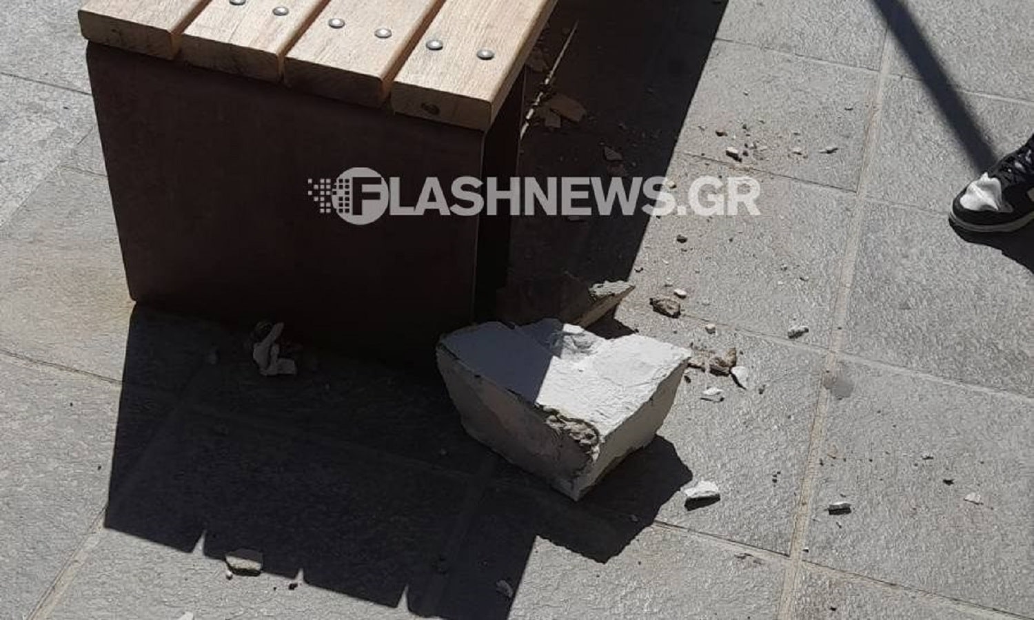 Από τύχη δε θρηνήσαμε θύματα σήμερα το μεσημέρι στα Χανιά όταν ένα κομμάτι μπαλκονιού αποκολλήθηκε και «προσγειώθηκε» στο πεζοδρόμιο.