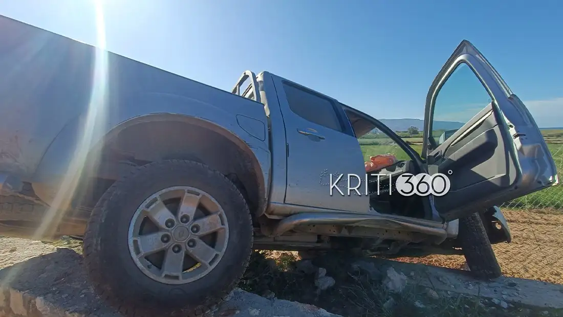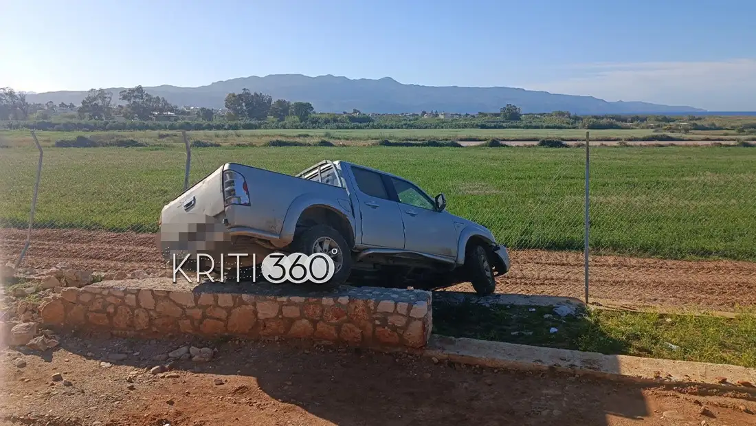 Το τροχαίο ατύχημα έγινε στο Μάλεμε, στην παλιά εθνική Χανίων Κισσάμου όταν αγροτικό εξετράπη από τον δρόμο και έπεσε σε πεζούλι, κάνοντας θρύψαλα την περίφραξη του αεροδρομίου Μάλεμε, αναφέρει το kriti360.gr.
