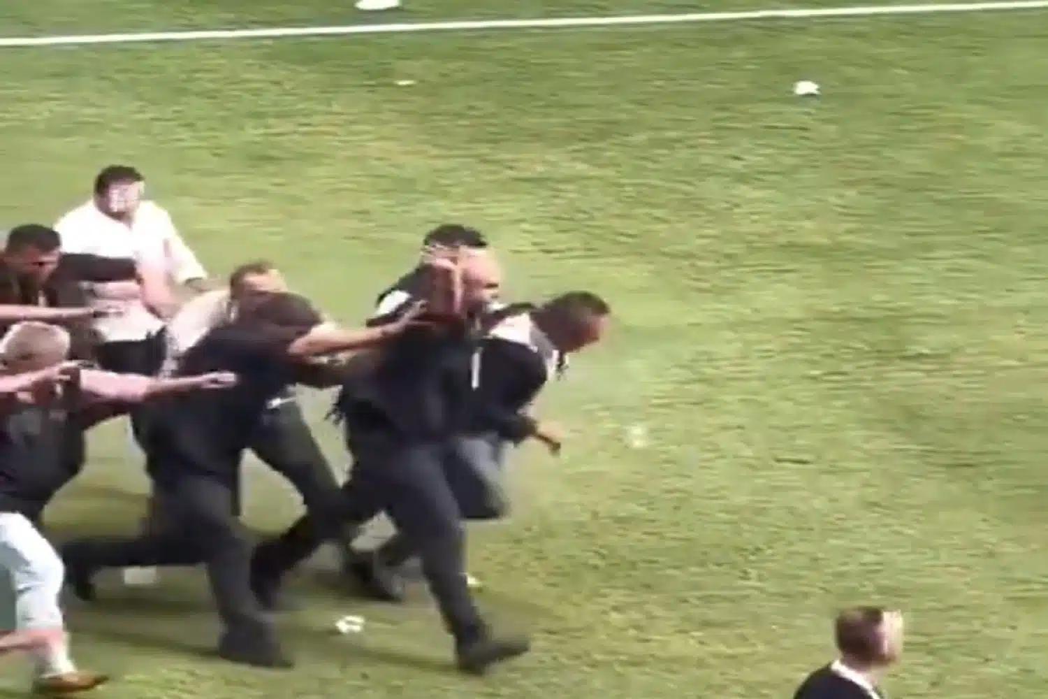 Ο διαιτητής της αναμέτρησης διέκοψε προσωρινά τον αγώνα και αφού τα πνεύματα ηρέμησαν ο πρόεδρος της Φενέρμπαχτσε επέστρεψε στη θέση του, στα επίσημα, με τη βοήθεια των ανδρών της προσωπικής του ασφαλείας, αλλά και αστυνομικών, που ύψωσαν “τείχος” προστασίας με τις ασπίδες τους.