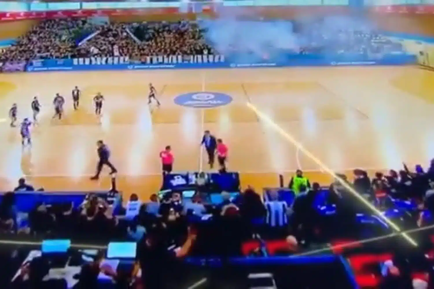 Η πολυαναμενόμενη ρεβάνς των προημιτελικών του EHF European Cup στο χάντμπολ ανάμεσα στην ΑΕΚ και την Παρτίζαν στο Βελιγράδι δεν ξεκίνησε όπως είχε προγραμματιστεί, καθώς οι Σέρβοι οπαδοί της Παρτίζαν προκάλεσαν αναταραχή πριν καν ακουστεί το πρώτο σφύριγμα.