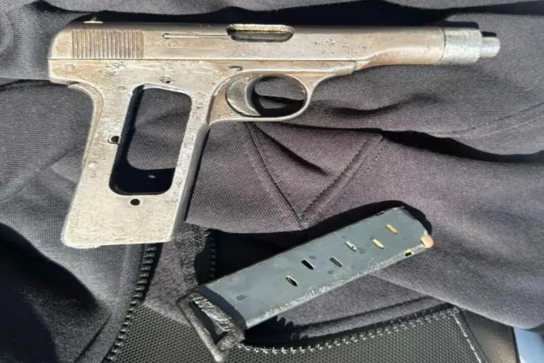 Μετά από έρευνα στο χώρο των αποσκευών του αυτοκινήτου βρέθηκε επιμελώς κρυμμένο και κατασχέθηκε, πιστόλι και γεμιστήρας με 10 φυσίγγια.