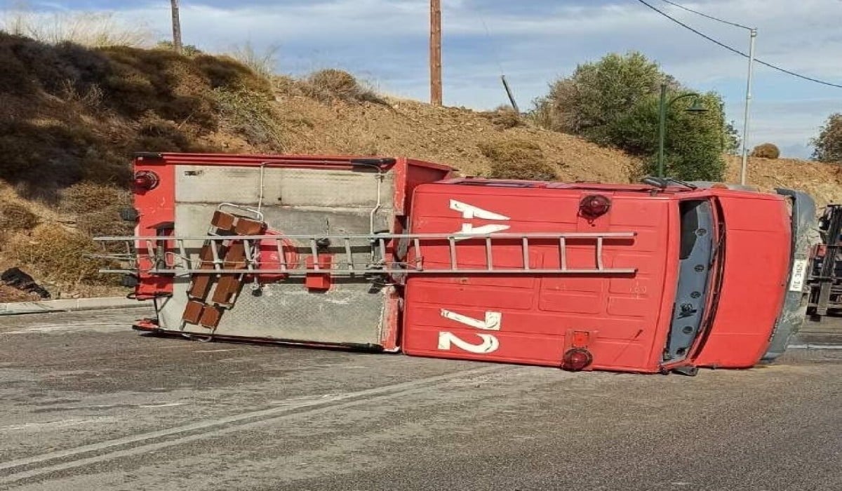 Τροχαίο ατύχημα σημειώθηκε το απόγευμα της Πέμπτης στον περιφερειακό δρόμο στη Χίο όταν πυροσβεστικό όχημα αναποδογύρισε στο οδόστρωμα, με αποτέλεσμα να τραυματιστούν δύο πυροσβέστες.