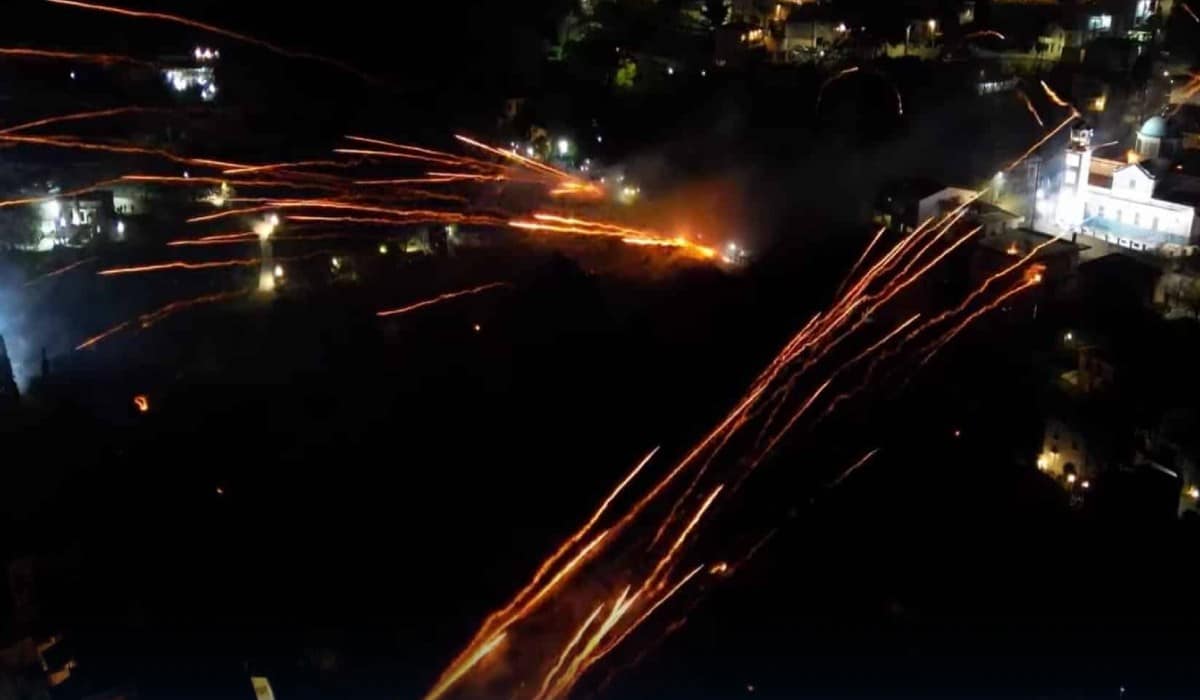 Εντυπωσιακός ήταν ο φετινός ρουκετοπόλεμος ανάμεσα στις ενορίες του Αγίου Μάρκου και της Παναγίας Ερυθιανής στη Χίο.