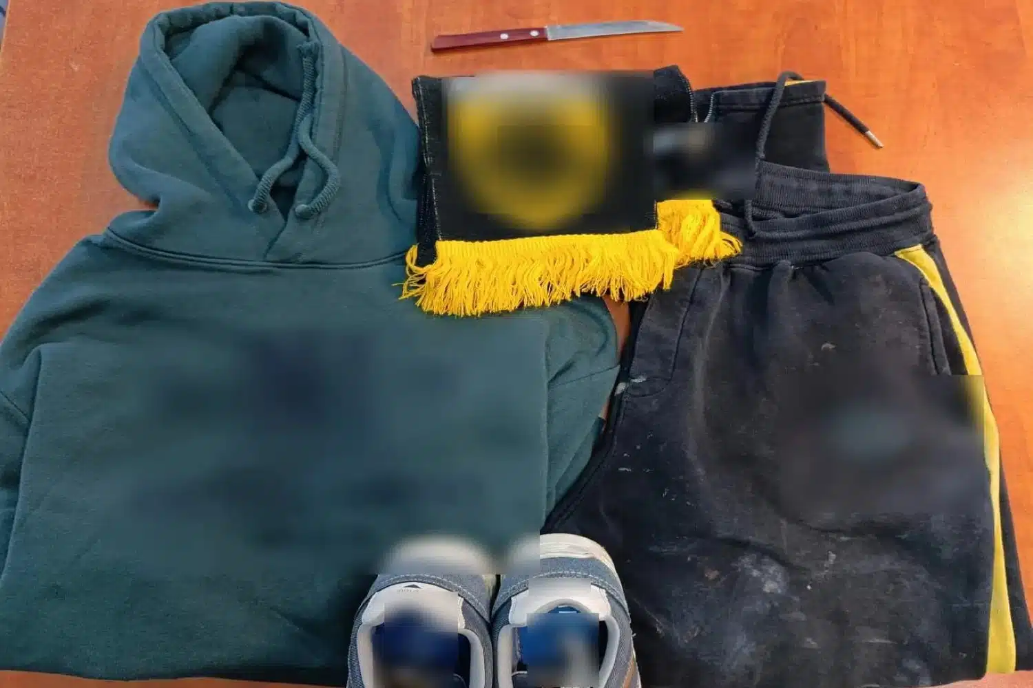 Στο πλαίσιο των ερευνών κατασχέθηκαν, το προαναφερόμενο μαχαίρι και ρουχισμός – υποδήματα που έφερε ο 19χρονος κατά το χρόνο τέλεσης της έκνομης πράξης.