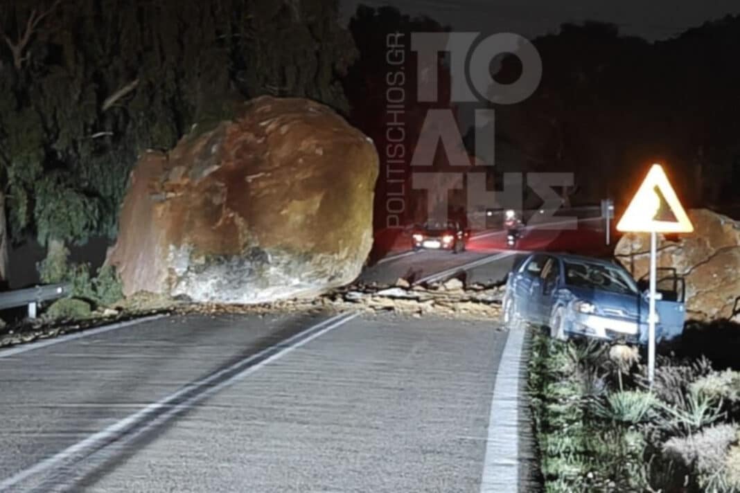Σοβαρό περιστατικό κατολίσθησης σημειώθηκε το βράδυ της Κυριακής στην περιοχή του Σαραπιού στη Χίο, στον οδικό άξονα που οδηγεί προς τα Καρδάμυλα, όταν μεγάλος βράχος αποκολλήθηκε από την πλαγιά του βουνού και κατέληξε στο οδόστρωμα, φράσσοντας πλήρως το ένα τμήμα του δρόμου.