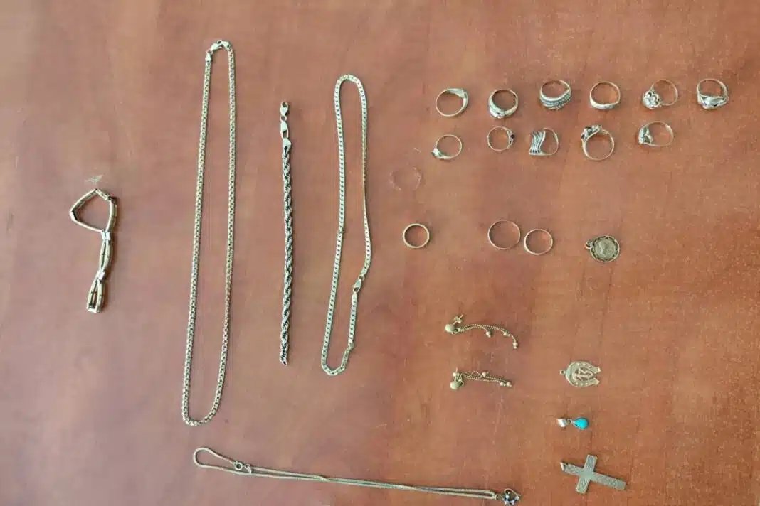 Όπως ακολούθως διακριβώθηκε, στο συγκεκριμένο σημείο μετέβη ο 44χρονος αλλοδαπός και παρέλαβε τη σακούλα. Κατά τον εντοπισμό του από τους αστυνομικούς βρέθηκαν στην κατοχή του, τα προαναφερόμενα κοσμήματα – τιμαλφή, τα οποία κατασχέθηκαν.