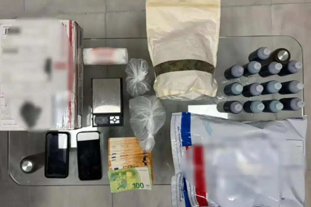 Κατασχέθηκαν συνολικά 884,29 γραμμάρια κάνναβης, ηλεκτρονική ζυγαριά ακριβείας, 1.900 ευρώ, δύο κινητά και ποσότητες υγρής ουσίας.
