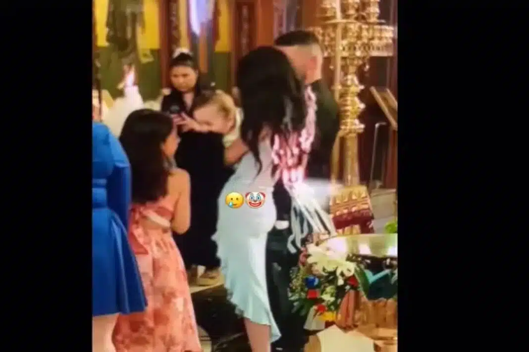 Στο βίντεο στο TikTok, που έχει αγγίξει το 1 εκατομμύριο προβολές, φαίνεται η νονά με το μακρύ μαύρο μαλλί να κρατά το βρέφος στην αγκαλιά της κατά τη διάρκεια του μυστηρίου, μέχρι που ένα μικρό λάθος, θα μπορούσε να είχε οδηγήσει σε σοβαρό ατύχημα.