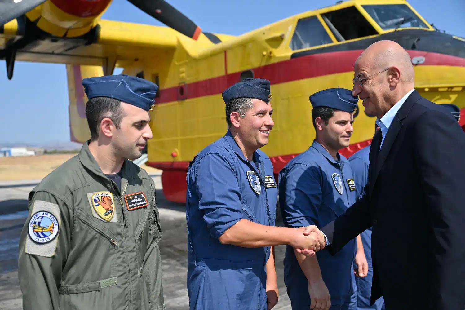 Ο υπουργός Εθνικής Άμυνας επισκέφθηκε και τα υπόστεγα επισκευών των πυροσβεστικών αεροσκαφών στην Ελευσίνα.
