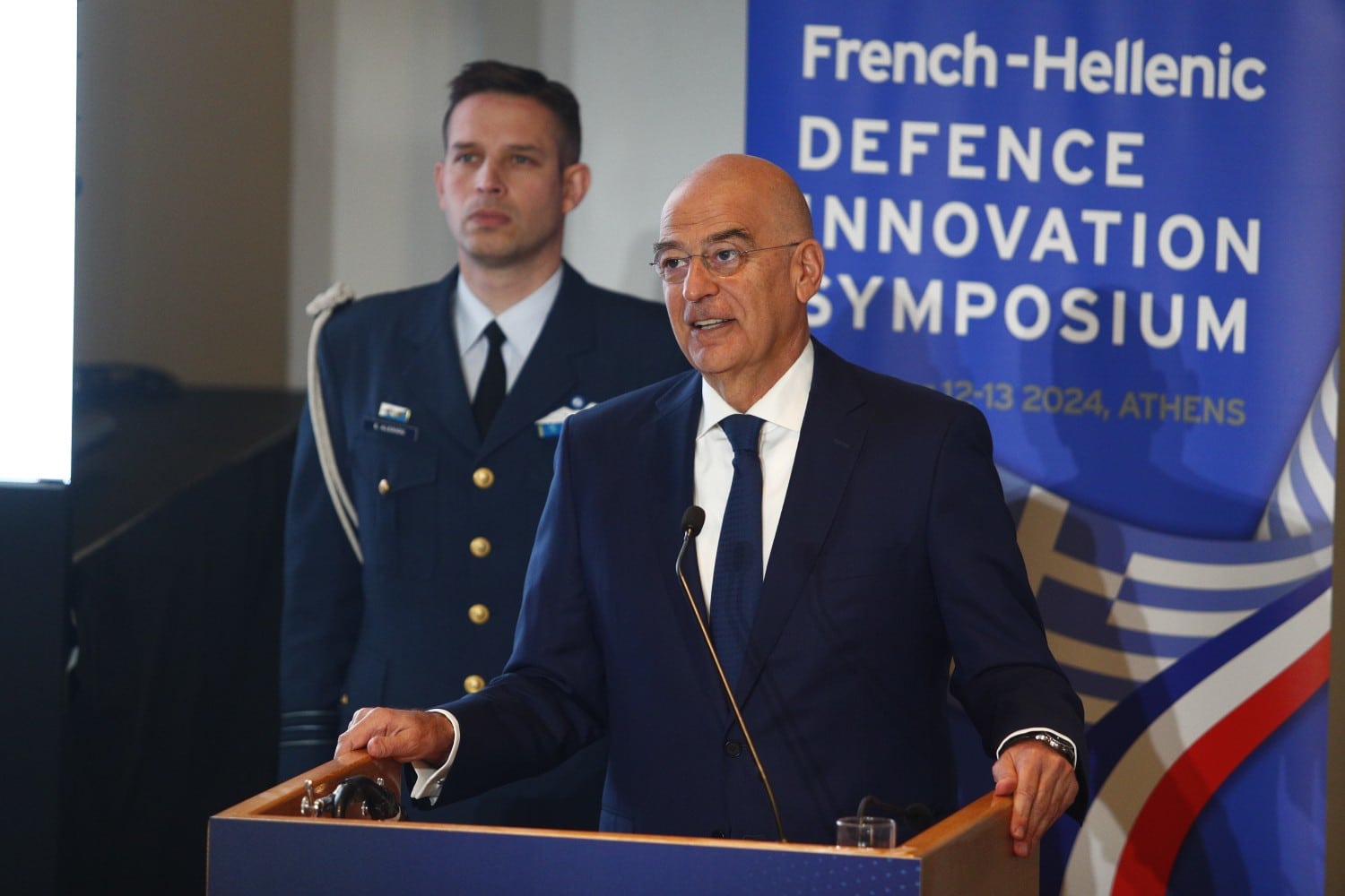 Ο υπουργός Άμυνας κήρυξε την έναρξη των εργασιών του 1ου Ελληνο-Γαλλικού Συμποσίου Αμυντικής Καινοτομίας το οποίο διοργανώνεται στο Ινστιτούτο Ιατροβιολογικών Ερευνών της Ακαδημίας Αθηνών (ΙΙΒΕΑΑ) από το Ελληνικό Κέντρο Αμυντικής Καινοτομίας (ΕΛ.Κ.Α.Κ.), σε συνεργασία με τη Γενική Διεύθυνση Αμυντικών Εξοπλισμών και Επενδύσεων του Υπουργείου Εθνικής ‘Αμυνας και το Κέντρο Αμυντικής Καινοτομίας (AID) της Γαλλίας.
