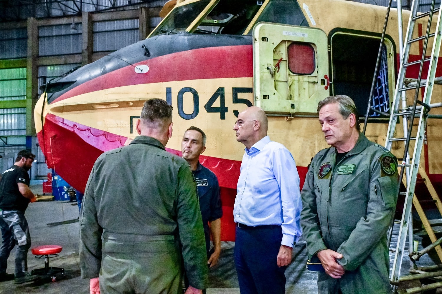 Ο κ. Δένδιας παρακολούθησε επίδειξη-παρουσίαση των αεροσκαφών CL – 215/415 και περιηγήθηκε στη Μοίρα Συντηρήσεως Αεροσκαφών, όπου συνομίλησε με ιπτάμενο, τεχνικό και διοικητικό προσωπικό.