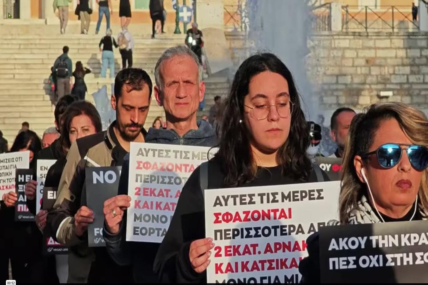 Συγκέντρωση διαμαρτυρίας και ευαισθητοποίησης, ενόψει της Κυριακής του Πάσχα για την οποία «σφάζονται πάνω από 2 εκατομμύρια αρνιά και κατσίκια» όπως αναφέρουν, πραγματοποιούν αυτή την ώρα vegans στο Σύνταγμα.