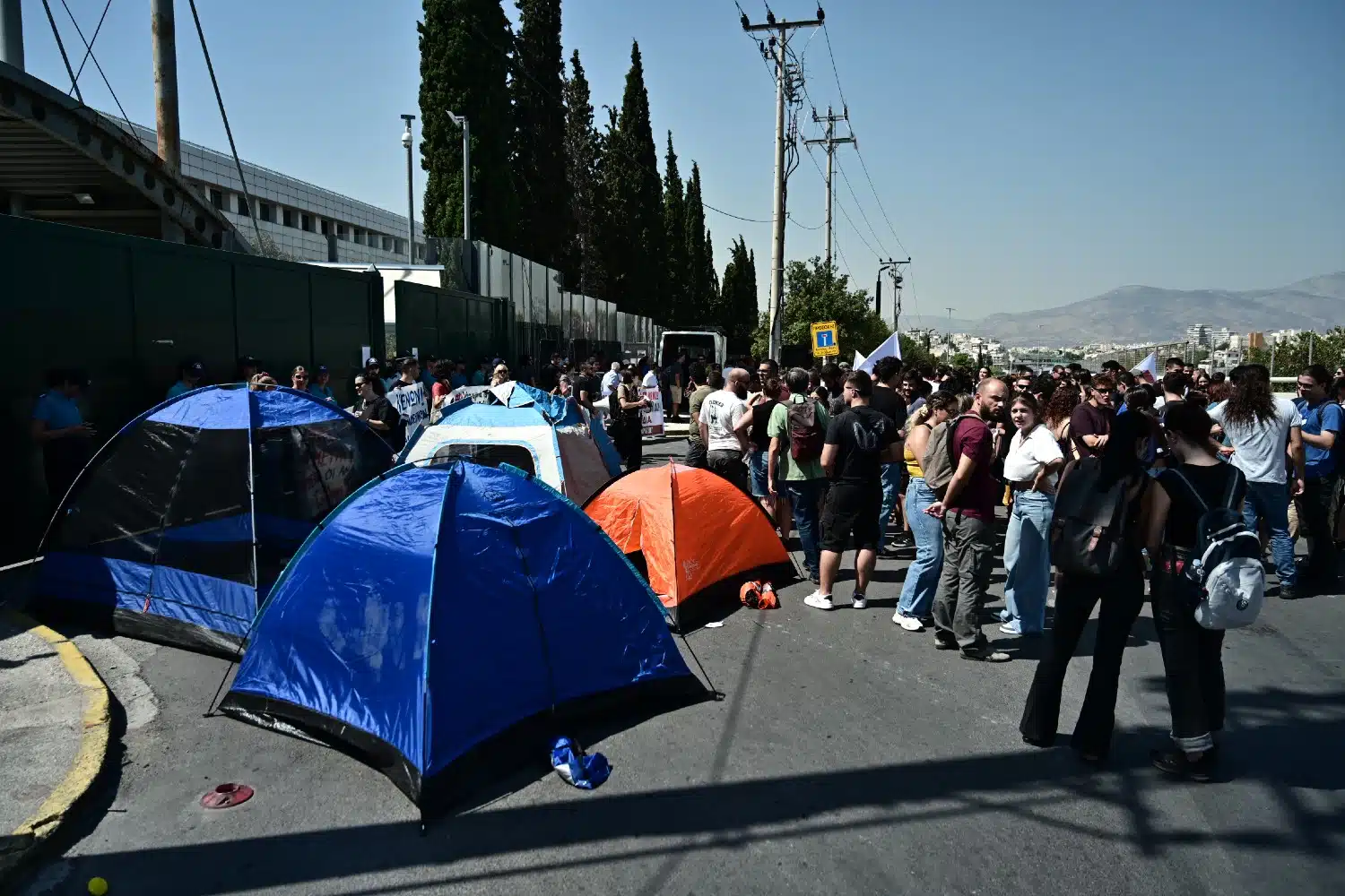 Αντίσκηνα έξω από το υπουργείο Παιδείας έστησαν φοιτητικοί σύλλογοι σε ένδειξη διαμαρτυρίας για το τεράστιο πρόβλημα της φοιτητικής στέγης, αλλά και για τις δρομολογούμενες διαγραφές φοιτητών.