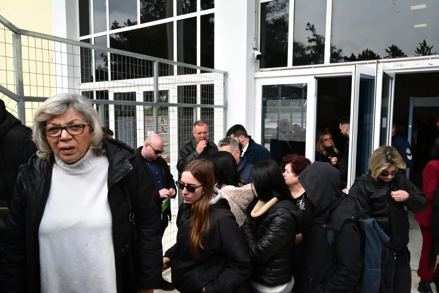 «Ντροπή» ήταν το σύνθημα που κυριάρχησε από τους συγγενείς των 57 νεκρών, καθώς τα διαθέσιμα καθίσματα ήταν 120, στην αίθουσα των 283 τετραγωνικών μέτρων. Στους όρθιους βρέθηκαν αρκετοί μεταξύ των 250 δικηγόρων, αλλά και οι δημοσιογράφοι και μάλιστα ζητήθηκε από την έδρα η αποχώρησή τους για λόγους έλλειψης χωρητικότητας, με τους συγγενείς των θυμάτων να εναντιώνονται.