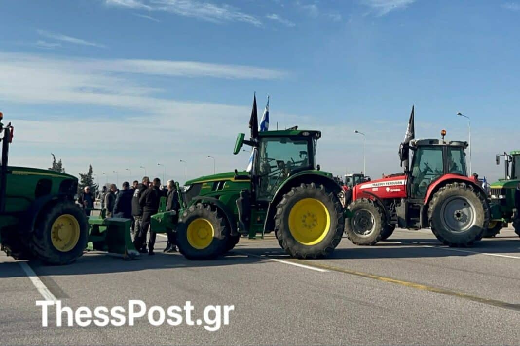 Λίγο μετά τις 12:00, οι αγρότες έβγαλαν τα τρακτέρ στο ρεύμα προς Θεσσαλονίκη διακόπτοντας την κυκλοφορία.