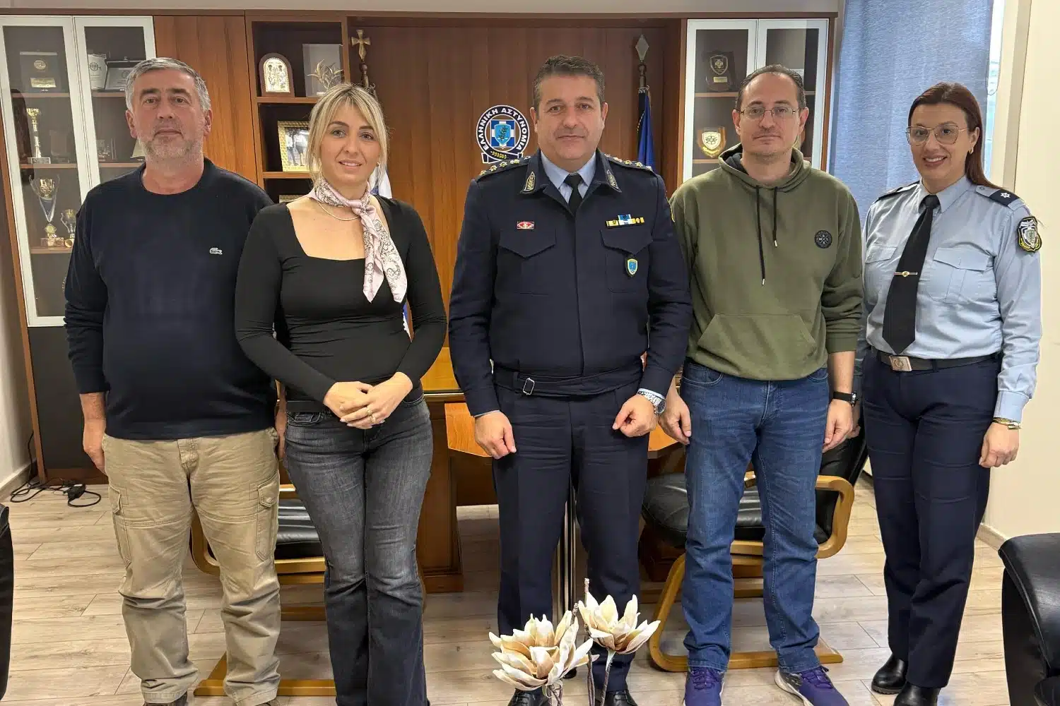 Σε θετικό και ουσιαστικό κλίμα, συγχαρήκαμε τον κ. Διευθυντή για τη συνέχιση της θητείας του και του ευχηθήκαμε καλή δύναμη και καλή επιτυχία στο έργο του, με σκοπό την ασφάλεια των πολιτών και τη στήριξη του αστυνομικού προσωπικού της Διεύθυνσης. Παράλληλα, πραγματοποιήθηκε ειλικρινής και αναλυτική συζήτηση για ζητήματα που επηρεάζουν άμεσα την καθημερινότητα των συναδέλφων και απαιτούν άμεσες παρεμβάσεις.