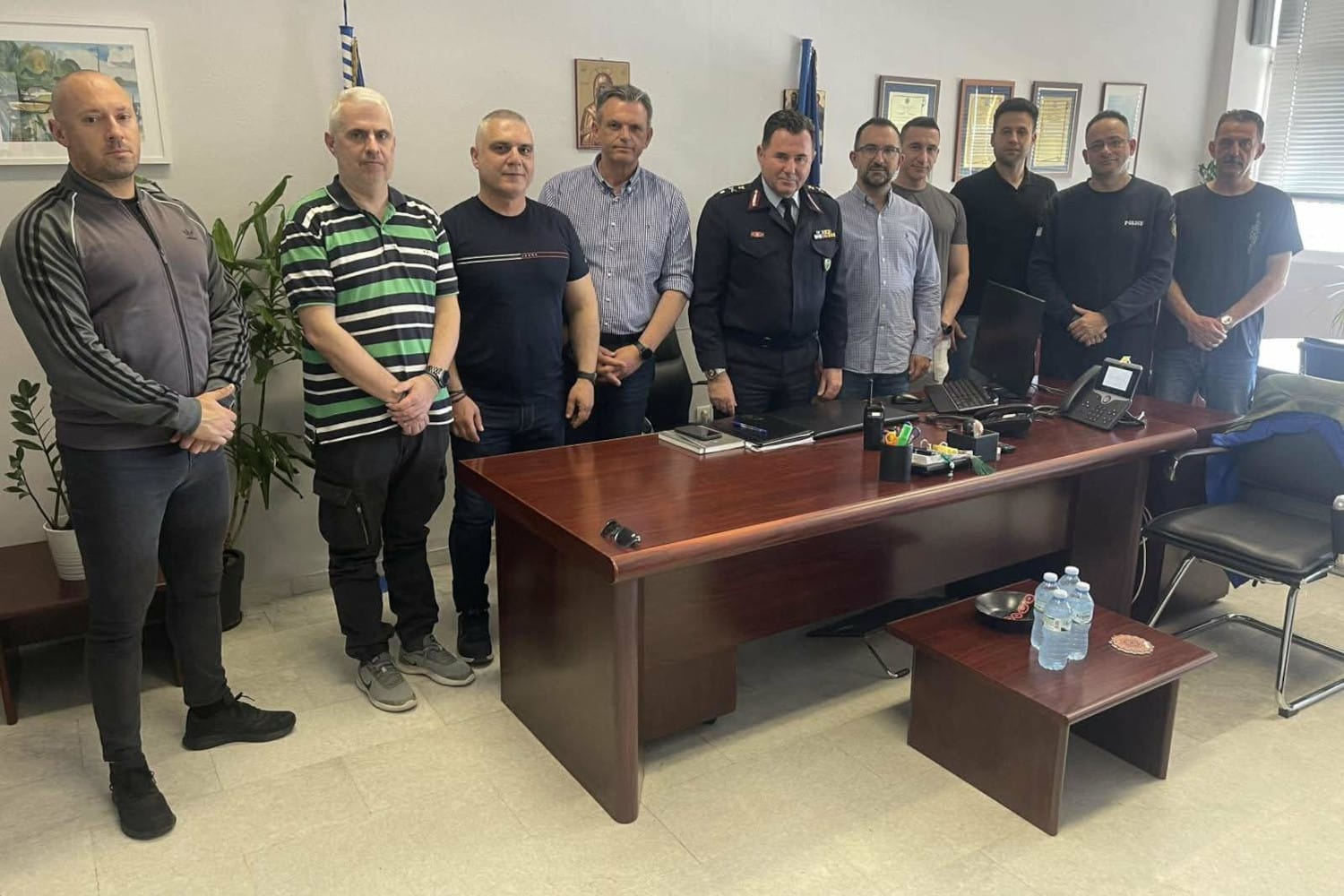 «Την Τετάρτη 22/4/2026, το Προεδρείο και Αντιπρόσωποι της Ένωσής μας και ειδικότερα ο Πρόεδρος κ. Ηλίας ΒΡΕΝΤΑΣ, ο Α΄ Αντιπρόεδρος κ. Χρήστος ΣΥΝΔΡΕΒΕΛΗΣ, ο Β΄ Αντιπρόεδρος κ. Βασίλειος ΑΛΥΜΑΡΑΣ, ο Γενικός Γραμματέας κ. Ευάγγελος ΜΠΟΥΖΑΣ, ο Ταμίας κ. Ιωάννης ΤΕΡΖΑΚΗΣ, το μέλος του Διοικητικού Συμβουλίου και υπεύθυνος θεμάτων εκπαίδευσης κ. Αντώνιος ΤΡΑΚΑΛΑΣ και οι Αντιπρόσωποί μας στην Πανελλήνια Ομοσπονδία Αστυνομικών Υπαλλήλων κ. Κωνσταντίνος ΓΙΑΒΡΗΣ, κ. Χρήστος ΤΖΩΤΖΟΣ και κ. Γεώργιος ΠΑΠΑΗΛΙΑΣ πραγματοποίησαν συνάντηση με τον Διευθυντή της Διεύθυνσης Αστυνόμευσης Νοτιοανατολικής Αττικής Ταξίαρχο κ. Ιωάννη ΓΟΥΣΙΑ προκειμένου να συζητηθούν υπηρεσιακά ζητήματα που απασχολούν τους συναδέλφους, οι οποίοι υπηρετούν στις Υπηρεσίες της Διεύθυνσης Αστυνομίας Νοτιοανατολικής Αττικής.