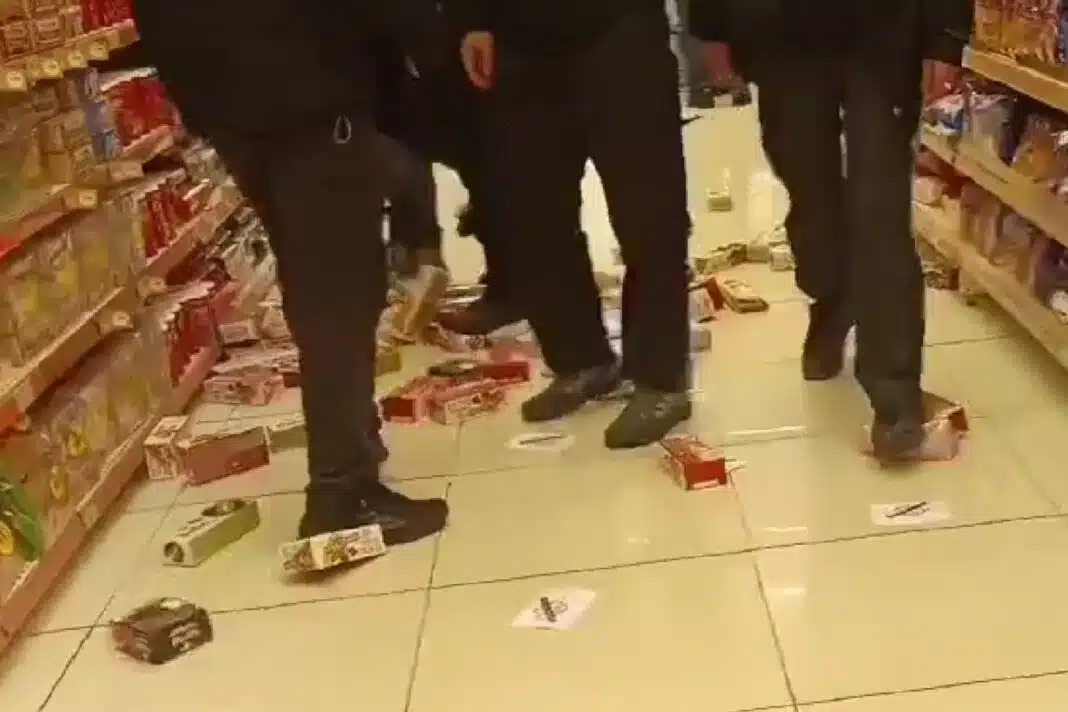 Κατά τη διάρκεια της παρέμβασης, πέταξαν τρικάκια, έριξαν από τα ράφια προϊόντα της συγκεκριμένης εταιρείας και στη συνέχεια άρχισαν να τα ποδοπατούν, προκαλώντας την κατάπληξη των πελατών που βρίσκονταν εκείνη την ώρα στο κατάστημα.