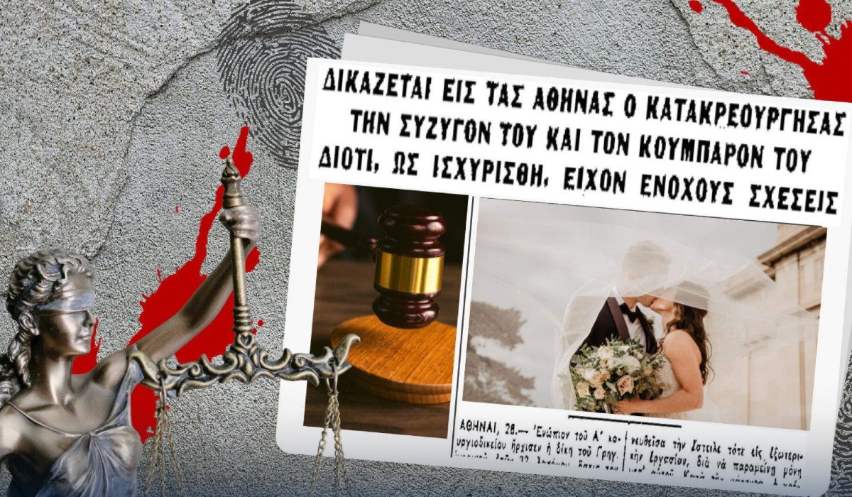 Στο εδώλιο του δικαστηρίου κάθισε ένας 32χρονος άνδρας, ο οποίος κατακρεούργησε τη νεαρή σύζυγό του και τον κουμπάρο τους, διότι πίστευε πως διατηρούσαν ερωτικό δεσμό. Το στυγερό έγκλημα αλλά και τη δίκη που ακολούθησε είχαν «αποτυπώσει» οι εφημερίδες της εποχής σε εκτενή δημοσιεύματά τους.