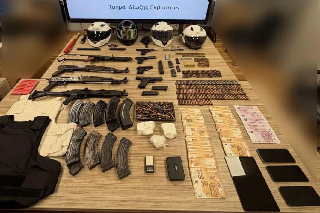 Κατασχέθηκαν, μεταξύ άλλων, τέσσερα πολεμικά τυφέκια, πέντε πιστόλια, 785 φυσίγγια, 4 οχήματα, 4 μοτοσυκλέτες και 31.780 ευρώ.