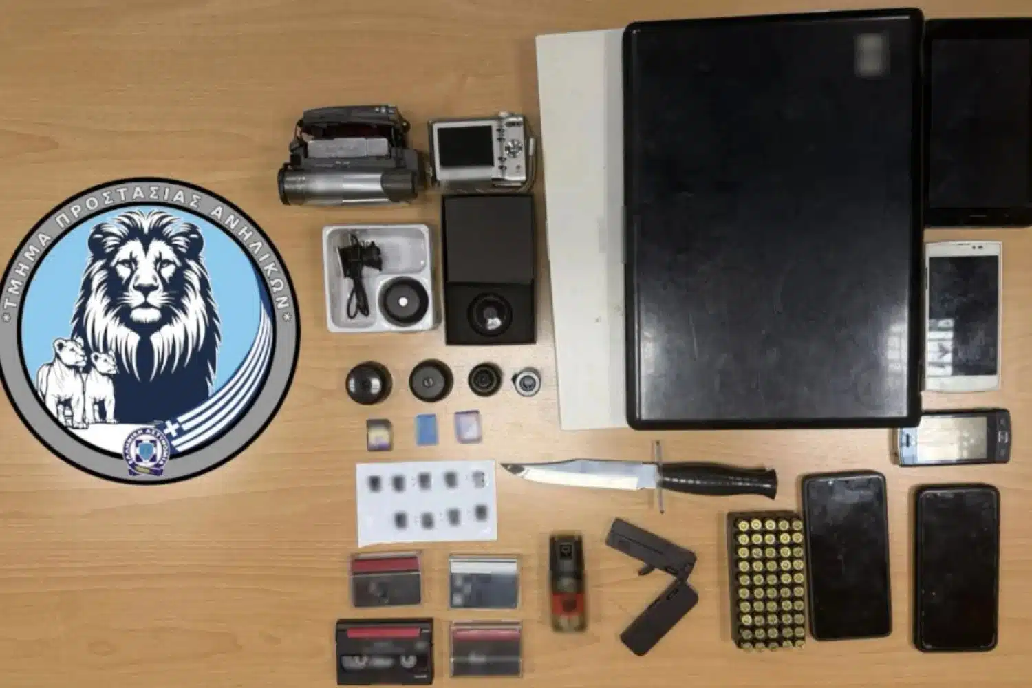 • ψηφιακές συσκευές οι οποίες περιείχαν βιντεοληπτικό υλικό από κρυφή κάμερα παρακολούθησης γυναικείας τουαλέτας καταστήματος καθώς και υλικό παιδικής πορνογραφίας,