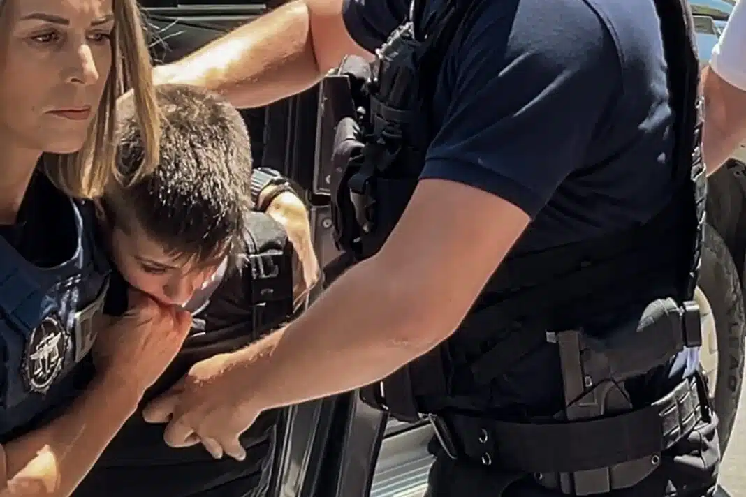 Μόλις το αυτοκίνητο της αστυνομίας έφτασε έξω από τα δικαστήρια, άμεσα έσπευσαν αστυνομικοί που προσπάθησαν να προστατέψουν την 25χρονη.
