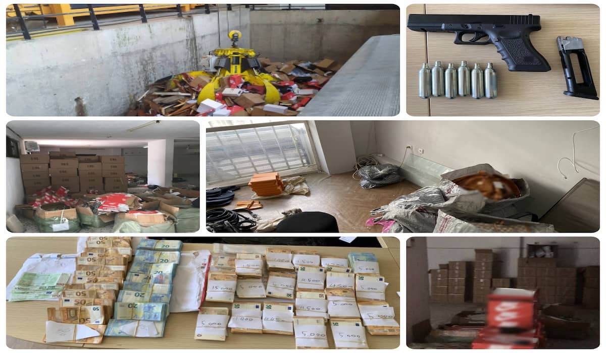 Επίσης, σε έρευνα σε οικία ανευρέθηκαν παραστατικά στα οποία, μέλος της οργάνωσης, φαινόταν ως αποδεκτής ποσότητας υποδημάτων που μεταφέρονται ακτοπλοϊκά από την Κίνα σε κοντέινερ. Στο πλαίσιο αυτό, το εν λόγω κοντέινερ δεσμεύτηκε από το Τελωνείο Πειραιά, προκειμένου να ερευνηθεί εάν το περιεχόμενό του σχετίζεται με τις εγκληματικές δραστηριότητές της οργάνωσης.